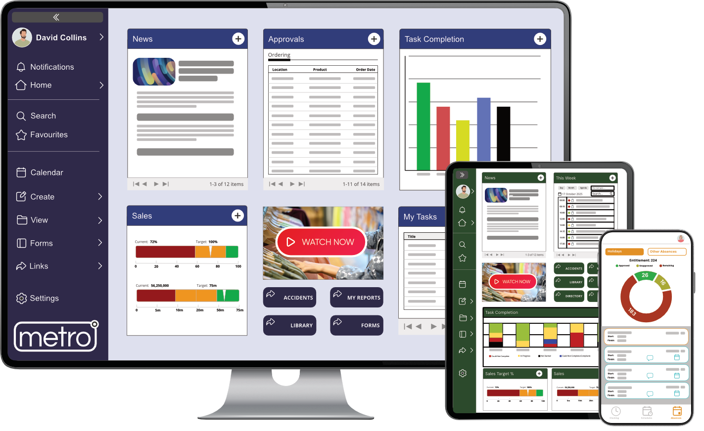 Developed to support Operations, Compliance, HR, Project, and Marketing teams, Metro is a digital workplace platform that enables organisations to shape their own journey based on their unique needs - eliminating the reliance on multiple disconnected systems. Metro is designed to: